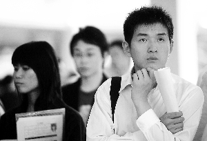 昨日的招聘會(huì)是金融營(yíng)銷類專場(chǎng),以往備受學(xué)生追捧的“金飯碗”昨日卻令不少求職者感到“當(dāng)頭一棒”。“早上8點(diǎn)我就過來了,已經(jīng)投了4家,但都不是很滿意,銀行招聘的好像只有興業(yè)銀行一家!痹谡衅笗(huì)現(xiàn)場(chǎng),記者遇到廣東金融學(xué)院金融專業(yè)大四學(xué)生小玉,他說自己的愿望就是到銀行工作,但因?yàn)榻鹑谖C(jī)的影響,銀行招聘正在“壓縮”,不僅崗位少了,條件也苛刻了許多,例如對(duì)年齡有了限制,“大學(xué)本科生年齡不超過24歲,碩士研究生年齡不超過28歲”。