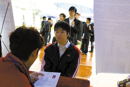 在深圳他沒有找到理想的去處,又踏上火車,來到廣州。在廣州已參加三場招聘會(huì),他拿到了一份面試通知單。他說自己會(huì)盡力爭取留下,“他們只要愿意要,不管什么待遇,我都不放棄!” 本報(bào)記者 夏楊 實(shí)習(xí)生 支少容 郭梅美