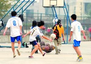 放暑假了,一群中學(xué)生在球場(chǎng)上盡情玩樂(lè)。時(shí)報(bào)記者 巢曉 攝