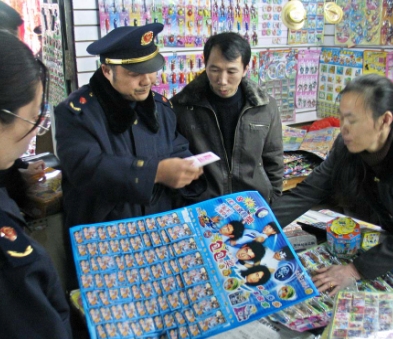 銷售方式非常隱蔽,銷售對象嚴格控制,增加了查處的難度。在查處之前,有記者到漢正街市場內進行了暗訪,但在批發(fā)市場上幾乎看不到“學生彩票”的銷售。只有“常規(guī)”的一套套的動畫玩具銷售。這就是銷售者逃避檢查的手段,例如《奧特曼》一張大的硬紙板上,有十二個形態(tài)各異的塑料玩具,不知情的“外行”就認為是賣玩具的,但仔細觀察,就會發(fā)現(xiàn)每一個小玩具都有一個編號,其實這個硬紙板還對應著一個彩盒,彩盒里就是彩票。(周紫薇 祁國威 沈右榮 張伊)