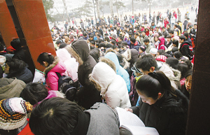 昨天“冷”的不僅僅是北京的天,研究生入學考試也遇到了少有的“降溫”現(xiàn)象。昨天,有120萬人參加了全國碩士研究生入學考試初試,這是自2001年以來,首次出現(xiàn)報名人數(shù)呈下降趨勢的一年,相較于去年的128.2萬,降幅達6.39%。共有21萬余人報考了2008年北京碩士研究生,這也比去年減少7127名,降幅為3.2%。雖然報考人數(shù)有所下降,但名校的競爭則更加激烈。