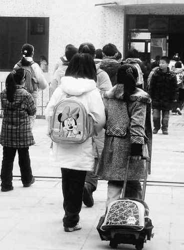 湖北省教育廳基礎(chǔ)教育處副處長周總清說:“過去中小學(xué)生書包重,主要是教輔材料多。從今年春節(jié)開學(xué)開始,全省農(nóng)村義務(wù)教育中小學(xué)免收課本費(fèi)、作業(yè)本費(fèi),并嚴(yán)禁向?qū)W生統(tǒng)一收費(fèi)征訂各種教輔資料,這就從源頭控制了‘課業(yè)’的總量;而城市地區(qū)中小學(xué)收費(fèi)標(biāo)準(zhǔn)也已公開化、透明化,因此,控制小學(xué)生書包重量相信可以做到!