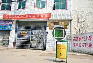 在位于該縣城北部的遂平縣實(shí)驗(yàn)小學(xué)門口,記者看到,該校大門緊閉,有人在大門里面坐著,不時警惕地注視著外面來往的人。校門口的一側(cè)掛著“五星級學(xué)校”、“管理一級學(xué)校”等牌子。大門外的墻上寫著“高高興興上學(xué) 平平安安回家”的大紅標(biāo)語,但卻已斑駁了。