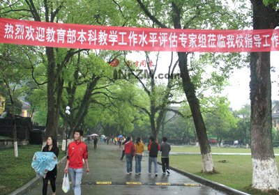 各種迎評(píng)的紅幅掛在教學(xué)樓或者人行道上,每幢教學(xué)樓門口都豎著倒計(jì)時(shí)牌,標(biāo)記著這是評(píng)估前的最后一天。學(xué)生會(huì)成員站在教學(xué)樓門口檢查;。校園110們穿著嶄新的保安制服,騎著摩托車在四處巡邏,據(jù)說為了迎評(píng),添置了不少人手。隨便找個(gè)什么人聊天,開口閉口談的都是“評(píng)估”。連和校內(nèi)的小店老板攀談,他也在說評(píng)估:“對(duì)面那家店,是為了迎評(píng)新開的……”