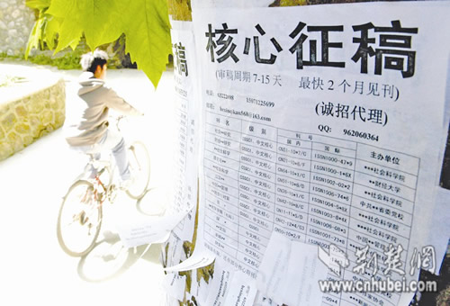 記者看到,有的廣告列出一溜刊物實名,其主辦單位、刊物級別、主要欄目、每版字數(shù)等一目了然,還加上省略號,宣稱其刊物資源十分豐富;有的廣告打出“發(fā)表時間最快、收費最合理”的招牌,明碼標價“單版220元起,雙版400元起”;有的廣告還直白地說“可代寫論文”,“供職稱評定、保研、評獎學金、找工作之用”,即便是“博士學位資格論文”也敢染指……
