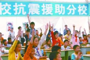 這些老師均來(lái)自綿陽(yáng)市區(qū)的幾所學(xué)校,而學(xué)生們,絕大多數(shù)來(lái)自北川。帳篷里,可容納600個(gè)學(xué)生。