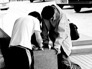 記者以買證為由,與賣證者小劉見了面。小劉一身學(xué)生打扮,看上去有20歲左右。他出示的本人學(xué)生證上姓名是“劉政”,學(xué)校為首都經(jīng)濟(jì)貿(mào)易大學(xué),系別為“工商管理”。他“指導(dǎo)”記者在一本空白的學(xué)生證上填寫資料,“除了姓名和身份證號,學(xué)號、系別等都按照要求填寫,或按照我的證寫!贝浾咛顚懲戤,他拿出“學(xué)!钡匿撚C(jī),在記者貼好的照片上壓蓋(見圖)。至此,一張“首經(jīng)貿(mào)學(xué)生證”新鮮出爐——整個過程不到10分鐘。