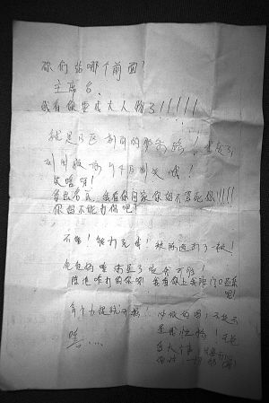 事發(fā)后,孩子的家人在其書包里發(fā)現(xiàn)一張類似“遺書”的日記!斑z書”上清楚地寫著:“我被記過了,寫2000字檢討,罰50元錢,找家長,之后就是一個字——嗚~~(哭)why(為什么)?because(因為)我出校門,陳池開車追我,我跑到風和日麗小區(qū)6樓上了,他一直等我……變成了這個死樣!明天間操,我們站前面,陳老師在上面罵我們,這下全校都認識了,丟大人了!”