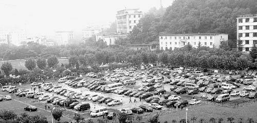 家長開車送孩子報到 操場停滿轎車如同車展(圖)