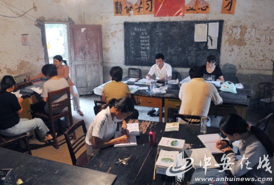 9月11日,明光市柳巷鎮(zhèn)中心小學(xué)部分教師在老校區(qū)的C級危房里辦公。