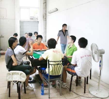 “里面賭得很大,一把牌最多可以輸200元。”該同學說,小文(化名)以前在附近一家書店里賭博,今年開始逃課來這個地方賭。如果打通宵,第二天上午就不上課,在寢室睡覺!叭ツ昙依锝o的學費都輸了,向家里要的買電腦的錢也輸了,輸了近萬元。他家里的經(jīng)濟條件并不太好,讓人看著痛心!