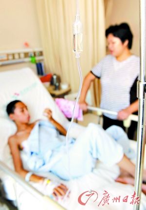 躺在病床上,肖雨瘦得皮包骨頭。肖雨的媽媽說,10月10日晚上,兒子的同學(xué)打電話給她,她趕到現(xiàn)場時(shí),兒子已經(jīng)被送去醫(yī)院,“在麻涌醫(yī)院,我看也不敢看,他流了太多血。