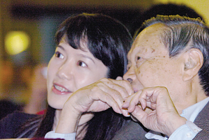 應(yīng)華英文教基金會(huì)之邀,享譽(yù)世界的著名物理學(xué)家、諾貝爾獎(jiǎng)獲得者楊振寧博士昨日(10月27日,下同)攜少妻翁帆走進(jìn)東大。這回楊振寧說起了物理學(xué)的誘惑,談起中國人與諾貝爾,甚至為老朋友吳健雄叫屈,卻避口不談“翁帆和我”。然而,86歲的老先生講到盡興處還是說漏了嘴:我24小時(shí)保持思考,有時(shí)睡到12點(diǎn)忽然像孩子似的對(duì)翁帆說我想出來了。