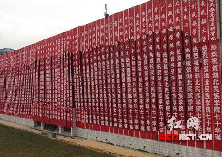 校慶現(xiàn)場(chǎng)的祝賀條幅。