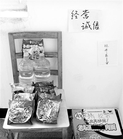 晨報訊(記者陳志鵬 通訊員曲瀅龍)“由于學業(yè)為重,本攤無人經(jīng)營,如需要商品,請自覺投幣,以我的誠心換取你的誠信!北驹5日起,華中師范大學武漢傳媒學院男生宿舍5樓出現(xiàn)一個無人經(jīng)營小攤,該校08級播音主持專業(yè)學生李立貼出開業(yè)告示,不過,開張3天就遭遇信任危機。