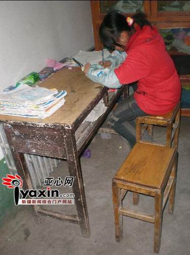 郭海菊的小女兒獨(dú)自做作業(yè)。而往常媽媽會(huì)坐在女兒身邊批改作業(yè)