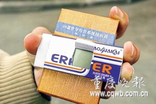 小小橡皮不僅可以讀懂英語(yǔ)題目,還可通過(guò)骨頭傳感將答案輸送到大腦,你信不信?騙子抓住大學(xué)生急于過(guò)四級(jí)的心理,騙了南岸某大學(xué)60多名學(xué)生。昨日(12月23日),受騙學(xué)生趙剛(化名)向記者展示了這種“高科技骨導(dǎo)傳音接收作弊器”,其實(shí)就是一塊只值兩元錢(qián)的普通橡皮。
