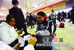 下午6點(diǎn)左右,四人趕到火車站,售票窗口前的隊(duì)伍已排到了大廳門口。10個(gè)學(xué)生窗口在下午5點(diǎn)已經(jīng)關(guān)閉了,但每個(gè)窗口前都排起10多人長(zhǎng)的隊(duì)伍,他們都是來(lái)通宵排隊(duì)的,這樣次日一早就排在隊(duì)伍的最前面了。