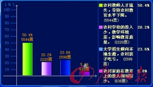 “18年前,我教的初中班上,起碼有60%的學(xué)生選擇報考重點(diǎn)高中,而18年后的今天,頂多只有1/4的學(xué)生會考了。要了解為什么現(xiàn)在農(nóng)村大學(xué)生越來越少,從初中開始就發(fā)生變化了!彼J(rèn)為,讓這些農(nóng)村孩子從初中畢業(yè)后就開始蒸發(fā)的最大原因有幾個方面:學(xué)費(fèi)高、就業(yè)形勢和社會風(fēng)氣。