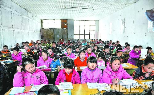 撩開(kāi)六年級(jí)教室的門(mén)簾,里面的景象讓記者吃驚:教室里密密麻麻坐滿(mǎn)了學(xué)生,頭排課桌與黑板的距離不到1米。要想走到教室里面去,像記者這樣的成年人甚至只能側(cè)身而過(guò)。