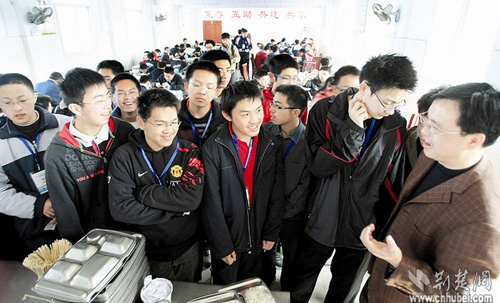 這些學(xué)生代表著中國中學(xué)生數(shù)學(xué)最高水平,他們將在武鋼三中進行為期18天的集訓(xùn)和考試,最后6名勝出者將進入國家隊,代表中國參加今年7月在德國舉行的第50屆國際數(shù)學(xué)奧林匹克競賽。