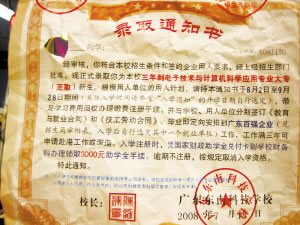 一直以來(lái),成績(jī)不錯(cuò)的徐洋都是父母的驕傲,剛剛放暑假,想到下學(xué)期就要初三了,徐洋決定在家里看看書。前兩天,小區(qū)的門衛(wèi)突然打電話來(lái)說(shuō)他有份錄取通知書剛剛寄到,讓他去取。等拿到錄取通知書后,徐洋懵了,通知書是由廣東東南科技學(xué)校寄出的,上面赫然寫著,“現(xiàn)正式錄取你為本校三年制電子技術(shù)與計(jì)算機(jī)科學(xué)應(yīng)用專業(yè)大專(正取)新生”。