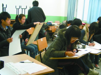 圖片說明:學(xué)生們?cè)谶M(jìn)行美術(shù)專業(yè)考試