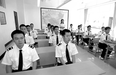 今年7月從高校畢業(yè)后,這38個(gè)年輕人懷揣制藥工程、土木工程、電子信息工程、經(jīng)濟(jì)管理等各種專業(yè)的學(xué)歷證書,和航空公司簽訂合同,成為公司一名員工,目前6個(gè)月的專業(yè)課程培訓(xùn)屬于試用期。每個(gè)月他們可以從公司領(lǐng)到兩三千元的薪水。不過(guò)他們不能隨便曠課,因?yàn)闀缯n就等于曠工。