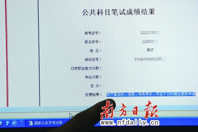 本報(bào)訊(記者/馬喜生張迪)2009年1月9日中央國家機(jī)關(guān)公務(wù)員考試成績公布,廣東考生易長安通過短信查詢成績時(shí),收到的回復(fù)卻是“您本次考試有違紀(jì)行為”,行政職業(yè)能力測試0分,申論51分。同一天,吉林某大學(xué)研究生王藝(化名)通過網(wǎng)上查分也被告知“ 嚴(yán)重違紀(jì)”,行政職業(yè)能力測試也為0分。