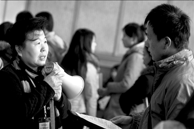 昨天上午8點(diǎn)30分,表演系考生現(xiàn)場(chǎng)報(bào)名確認(rèn)工作在中戲?qū)嶒?yàn)劇場(chǎng)開始。由于一些考生未在規(guī)定期限內(nèi)網(wǎng)上報(bào)名,中戲在劇場(chǎng)外設(shè)置了兩臺(tái)電腦,以方便考生補(bǔ)報(bào),F(xiàn)場(chǎng)還為考生和家長(zhǎng)們安排了椅子和飲用水,一名老師拿著喇叭指引考生進(jìn)場(chǎng)報(bào)名,并為考生解答各種問題,現(xiàn)場(chǎng)未現(xiàn)擁擠場(chǎng)面。