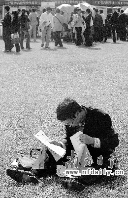 中山大學(xué)西方經(jīng)濟(jì)學(xué)專業(yè)的陳同學(xué)對記者說:“兩年畢業(yè)本來就容易被認(rèn)為沒有學(xué)到什么東西,又碰上金融危機,現(xiàn)在工作只能盡量找了!钡腿ツ晗啾,昨日的研究生專場熱度稍有減少。一些研究生表示,在這場招聘會前,已有一些人通過多種途徑找到了工作。據(jù)了解,研究生一般開出的心理價位是5000元左右。