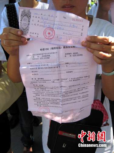 “4月初過來考察時(shí),開發(fā)商也給我們看了預(yù)售許可證,覺得價(jià)格合適,證件齊全,就簽訂了認(rèn)購書,交了十多萬的首付款,可正式購房合同卻遲遲不簽。后來從網(wǎng)上一查才知道,這個(gè)項(xiàng)目當(dāng)時(shí)并沒有取得預(yù)售許可,給我們看的都是假的,所以我們要求退房!蓖瑯觼碜员本┑馁彿空咄〗惴Q,他們多次找到開發(fā)商要求退房,均遭到強(qiáng)硬拒絕。