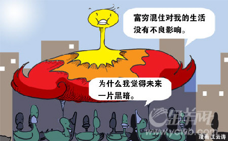就好像打球,打得好的與打得爛的在一起玩,結(jié)果大家都沒(méi)意思。請(qǐng)問(wèn)窮人住在富人家旁他真的會(huì)開(kāi)心嗎?富人扔掉的垃圾都比你的家當(dāng)還好,讓人多郁悶!———網(wǎng)易廣州網(wǎng)友