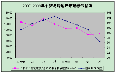 住房公積金個人貸款與房地產(chǎn)市場景氣情況密切相關(guān),2007年四季度以來,由于房地產(chǎn)市場表現(xiàn)低迷,個人貸款發(fā)放呈下降趨勢,2008年三、四季度個貸發(fā)放額同比分別減少18.34%、14.95%,全年同比減少165.64億元,降幅為7.52%。2008年末,全國個貸率(個人貸款余額/繳存余額)為50.30%,同比減少2.53個百分點(diǎn)。