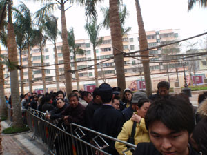 剛來海南不久的吳先生排隊(duì)拿號(hào)似乎很有經(jīng)驗(yàn)。他跟幾個(gè)朋友提前幾天就聯(lián)系好了幾名農(nóng)民工“排隊(duì)”。每個(gè)農(nóng)民工200元,從18日晚七八點(diǎn)鐘開始排,排到第二天早上七八點(diǎn),再來換班親自排隊(duì)。盡管如此,吳先生也郁悶不已。原本他以為自己排在比較靠前的位置,但開盤前時(shí),開發(fā)商打開第一道門,里面已經(jīng)排著六七十個(gè)人了。