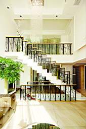 抽象的用形是空間中個(gè)性的表現(xiàn),形的取材來(lái)自于自然的樹(shù)的形狀,同樣是加以抽象與模糊,便成了主題樓梯的扶手。