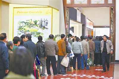 12月5日,上海房展會吸引了不少購房者。在一家房產(chǎn)商的展臺前,登記會員的市民排起了長隊(duì)。