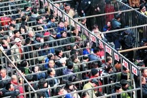 不過,在這種搶字當(dāng)頭的時刻,也有一些讓人感動的細(xì)節(jié)。家住西門路口的劉大爺今年83歲,家中只有他和老伴。為了趕上這場置換房簽約,昨天早晨6點多,老人就出發(fā)了,從家一步步地挪到農(nóng)招大酒店。來之前,老人想自己肯定算早的,但到了簽約地點,才發(fā)現(xiàn)隊伍都快排出了大院。正在劉大爺不知所措時,一些年輕居民紛紛往一邊靠去,給老人讓出一條道,還有的小伙找到執(zhí)勤的保安,讓他們攙扶著老人優(yōu)先進(jìn)入簽約大廳。而這一切,幾乎都是在一種默契下完成。
