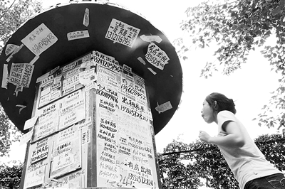 “別的小區(qū)里信息島上還貼著鐘點(diǎn)工、培訓(xùn)班招生等信息,咱小區(qū)就只有房屋出租的小廣告!被业乇崩锏木用裢跤昵镎f。