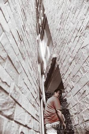 小區(qū)7棟與6棟之間有一個“V”字型的縫隙。經記者測量,兩棟樓最寬間距3.4米,越朝里靠得越近,在房子未出現問題之前,最窄處有幾厘米的距離,而如今,卻是6棟的墻體壓在了7棟上,連塑鋼窗都打不開,抬頭往上看時,從1樓到6樓,兩棟樓緊緊地貼在了一起。