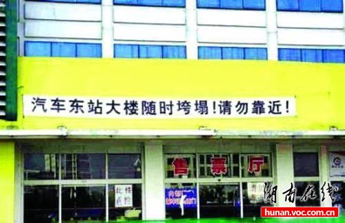 該工作人員表示,車站邀請(qǐng)專家對(duì)大樓進(jìn)行鑒定指出,此樓隨時(shí)會(huì)垮塌,有可能發(fā)生脆性斷裂,人員在里面非常危險(xiǎn),所有的辦公單位已經(jīng)搬出。“打出橫幅是為了提醒廣大市民‘此樓危險(xiǎn)’!