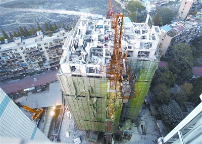 昨日,在省供銷倉(cāng)儲(chǔ)運(yùn)輸總公司違建樓拆樓現(xiàn)場(chǎng),施工人員已經(jīng)從20層樓拆到第14樓,據(jù)稱,原計(jì)劃28日完成拆樓工程預(yù)計(jì)可以提前。省供銷倉(cāng)儲(chǔ)運(yùn)輸總公司12層樓違建至20層樓的“樓高高事件”引起社會(huì)廣泛關(guān)注,從10月27日開(kāi)始拆樓,到11月6日用9天時(shí)間才完全拆掉一層半,主要原因是樓層較高難于施工,現(xiàn)澆的水泥樓板和隔墻又十分堅(jiān)硬,工人們用錘子一點(diǎn)點(diǎn)鑿進(jìn)度很慢。11月8日,有專業(yè)拆樓經(jīng)驗(yàn)的利固公司進(jìn)駐,30多名工人用切割機(jī)等設(shè)備只用一天時(shí)間可以將一層樓的樓板全部切割完,大大提高拆樓的效率。
