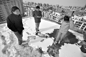 昨日上午,朝陽(yáng)區(qū)華展國(guó)際公寓20余業(yè)主爬上C座15樓頂天臺(tái)“抗議”小區(qū)不供暖,要求相關(guān)部門立即解決小區(qū)供暖僵局。