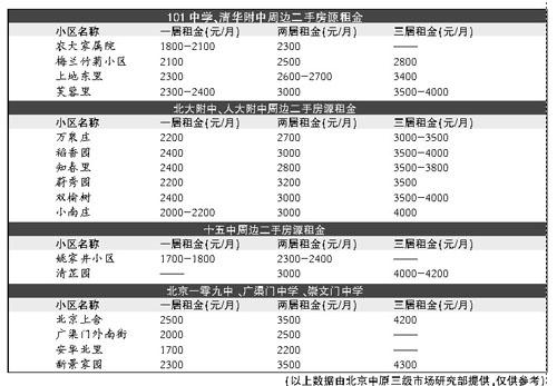 為此,本報(bào)特對(duì)部分名校周邊重點(diǎn)租賃項(xiàng)目的租金情況進(jìn)行盤點(diǎn),希望能給備考的學(xué)子和家長(zhǎng)們予以幫助。(見表)