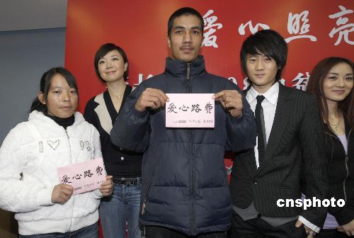 1月2日,臧天朔、葉蓓、江一燕等藝人在北京為不能回家過(guò)年的貧困大學(xué)生資助回家的路費(fèi)。中國(guó)扶貧基金會(huì)“新長(zhǎng)城”項(xiàng)目發(fā)起“愛心照亮回家路——資助貧寒學(xué)子回家過(guò)年”慈善活動(dòng),臧天朔等眾多藝人出席活動(dòng)并現(xiàn)場(chǎng)捐款。此次活動(dòng)將幫北京地區(qū)的眾多貧困大學(xué)學(xué)子得到回家過(guò)年的路費(fèi),讓他們能夠回家與家人團(tuán)聚。中新社發(fā) 杜洋 攝