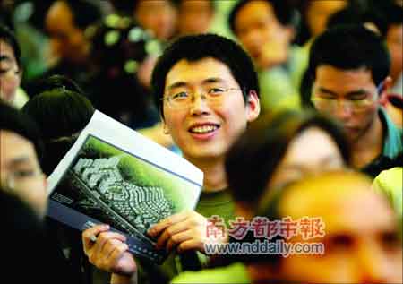 昨天上午,開發(fā)區(qū)萬科新里程樓盤門前人頭攢動,車龍由開創(chuàng)大道延伸至廣汕路,場面熱鬧非常。在銷售中心門外,開發(fā)商搭建了巨大的涼棚,擺設了3000多把坐椅,供通過審核的1400多戶申購家庭等候選房。此次,新里程首批共推出541套限價房。