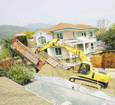 幾百平方米的豪華別墅前,被挖出一個(gè)主體面積370多平方米的地下室,最深處達(dá)3.6米,相當(dāng)于足足多了一套新別墅。昨天,出現(xiàn)在九溪玫瑰園的這一違章建筑經(jīng)群眾舉報(bào)后,由西湖區(qū)拆違辦牽頭對地下室進(jìn)行強(qiáng)制回填,預(yù)計(jì)回填土方數(shù)千立方米,20輛工程車,預(yù)計(jì)用時(shí)3天,運(yùn)土300余車。