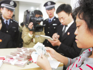 兩名法警立即沖上去,與女子爭奪在一起。最終,女子被帶走,信封被搶了回來,法官從信封里倒出數(shù)十個(gè)建行存折和數(shù)十張銀行卡,并找到一張記錄該公司12個(gè)銀行賬戶的單子,“戰(zhàn)果不錯!”執(zhí)行法官笑了。
