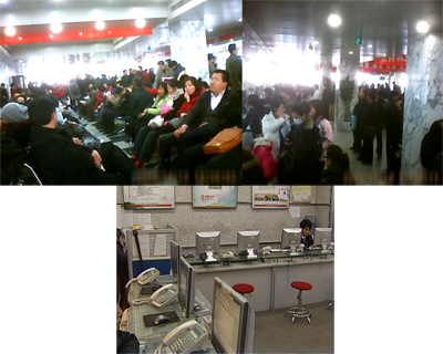為了了解過戶的實(shí)際情況,記者采用了隱蔽拍攝的方式。在朝陽區(qū)房產(chǎn)交易中心記者看到,整個(gè)大廳到處都是排隊(duì)等待過戶和辦證的購房者。幾排座椅已經(jīng)坐滿了人,過道上和各個(gè)窗口都擠滿了人。有的人從早上5點(diǎn)就起來排號(hào),在長時(shí)間的等待中,甚至都睡著了。由于怕錯(cuò)過號(hào),有的人到了吃飯時(shí)就隨便買點(diǎn)盒飯打發(fā),記者了解到,最近幾周來,這里都是人山人海。