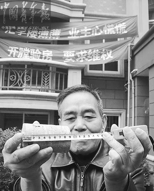 “結(jié)果出來就是沒有一個(gè)洞是合格的,當(dāng)我們拿著這個(gè)跟開發(fā)商說的時(shí)候,他們還說樓是合格的,這只不過是瑕疵而已!毙旖ㄅd說。